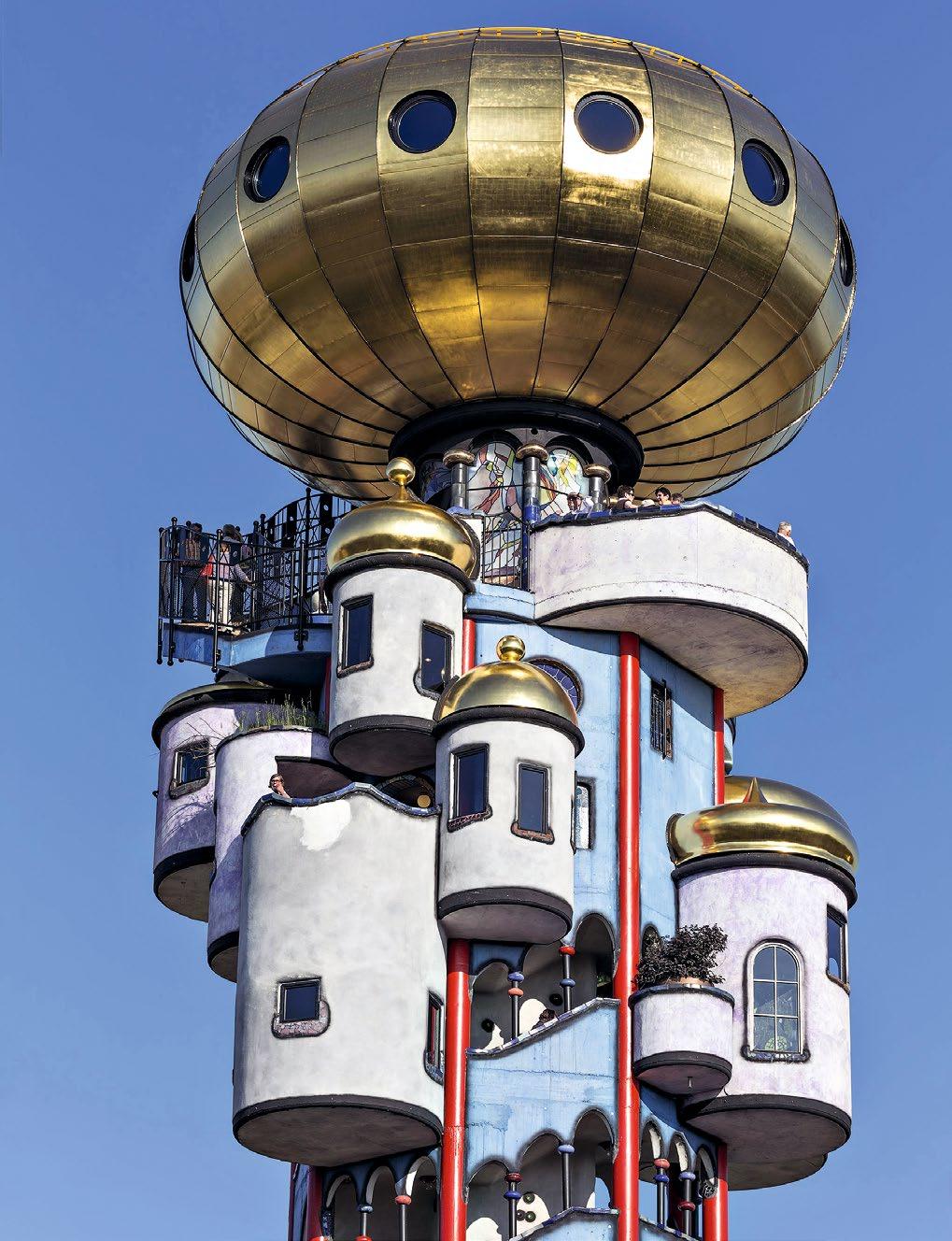 Voici une construction inédite en guise de référence à un artiste inhabituel. Parmi ses derniers travaux, le peintre et sculpteur autrichien Friedensreich Hundertwasser, disparu il y a 25 ans, a conçu sur le site de la brasserie bavaroise Weissbierbrauerei Kuchlbauer, à Abensberg, une tour bigarrée de 70 mètres de haut. Son ami et compagnon de travail de longue date Peter Pelikan a poursuivi le projet et les travaux se sont achevés en 2010. Le Musée des beaux-arts voisin d’Abensberg propose des aperçus des travaux de Hundertwasser et de sa vie. En outre, une sélection de projets architecturaux y est également présentée. La tour et l’exposition sont aujourd’hui des attractions attirant une foule de visiteurs. David Strohm