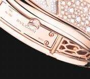 Das Modell Serpenti ist ein Klassiker des italienischen Juweliers Bulgari In der Regel windet sich die schlangenförmige Uhr in mehreren Umgängen um das Handgelenk und trägt eine winzige Zeitanzeige im Kopf Erstmals stellt Bulgari eine Variante in komplett überarbeiteter Form als Armreif vor. Da auf das elastische Tubogas-Prinzip verzichtet wurde, besitzt der Reif zwei Scharniere zum Öffnen Wie eh und je beisst sich die Schlange nicht in den Schwanz und bildet somit keinen geschlossenen Kreis Der abstrahierte Kopf beherbergt ein winziges Quarzwerk, das über eine diamantbesetzte Krone eingestellt werden kann. Die exotische Schmuckuhr ist ganz aus Gold gefertigt und an der Oberseite und auf dem Zifferblatt mit zufällig angeordneten Brillanten unterschiedlicher Grösse im sogenannten Snow-Setting ausgefasst Ein breiter, abgeschrägter und polierter Rand lässt das goldene Reptil schlank und elegant wirken 81000 Franken