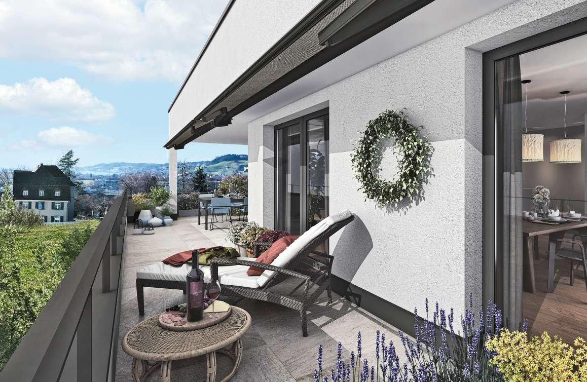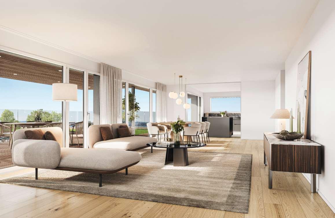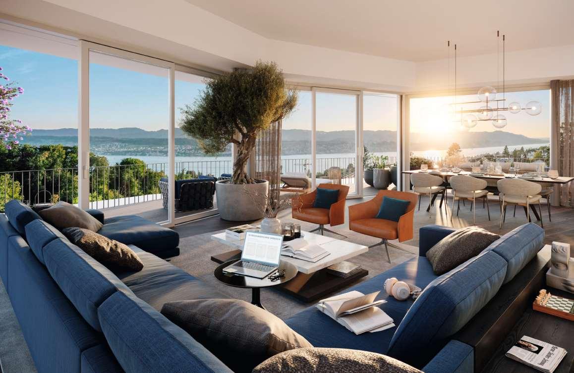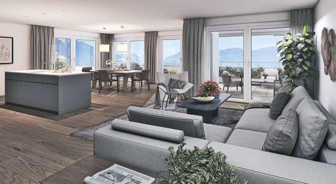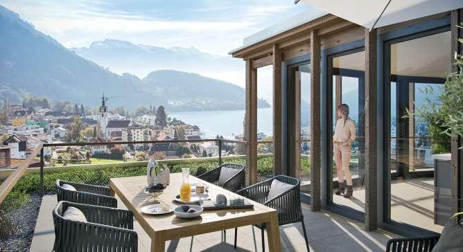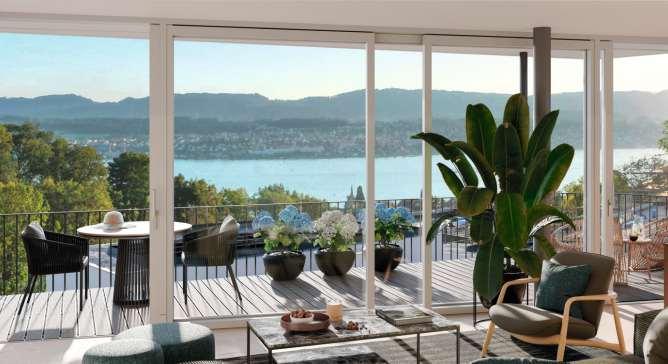 Auf dem gegen Süden exponierten Grundstück entsteht per Ende 2025 ein Gebäude mit exklusiven Wohneinheiten Die Hanglage garantiert für alle Einheiten viel Licht, Sonne und eine eindrückliche Weitsicht auf See und Berge. Die klug konzipierte Anordnung der noch verfügbaren Wohnungen (3½-ZimmerWohnungen sowie eine 5½-Zimmer-Maisonettewohnung) verspricht ein hohes Mass an Privatsphäre sowohl in den Innen- wie auch Aussenräumen. Der Innenausbau (Wohnflächen zwischen ca. 130 m² und 195 m²) kann innerhalb der grosszügigen Budgets selbst gestaltet werden. Cheminée, Freecooling, KNX Boost sowie Komfortlüftung sind standardmässig im Innenausbaukonzept enthalten. Die Aussenräume werden durch vielseitig nutzbare «Patios» ergänzt