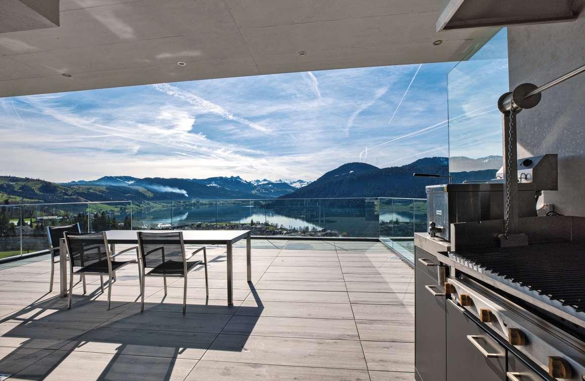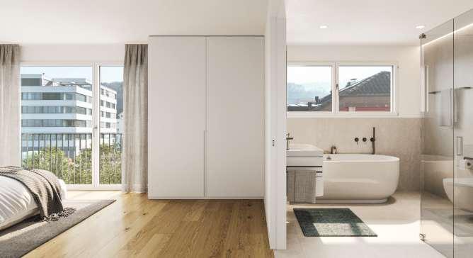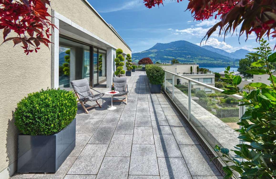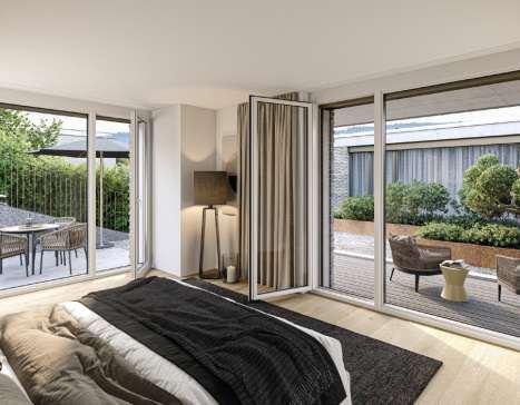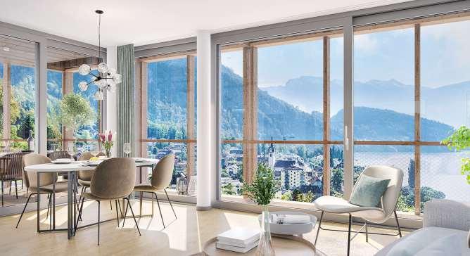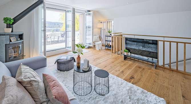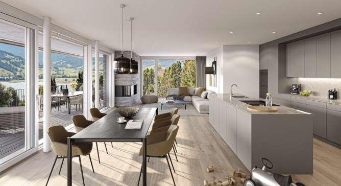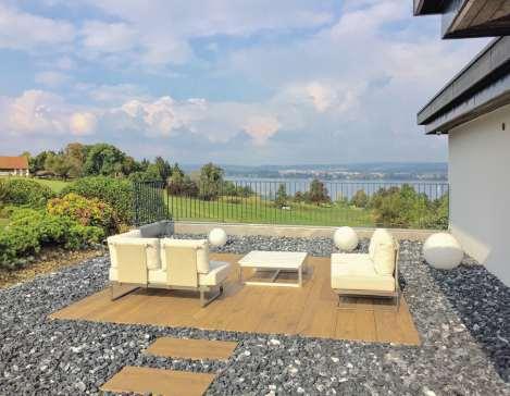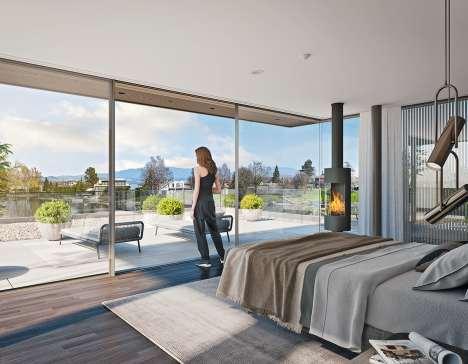 Modern und schnörkellos nimmt sich die Residenz zurück und überlässt die Bühne dem See und der umgebenden Landschaft. Herrliche Ausblicke auf den See und die Berge bieten alle Wohnungen, wobei im ersten Obergeschoss neben den Balkonen auch noch seitliche Aussensitzplätze punkten, während im Erdgeschoss grosse Gärten und gedeckte, nicht einsehbare Terrassen zum Relaxen einladen. Die Attikawohnungen bieten von ihren teils gedeckten Terrassen den schönsten Rundblick.