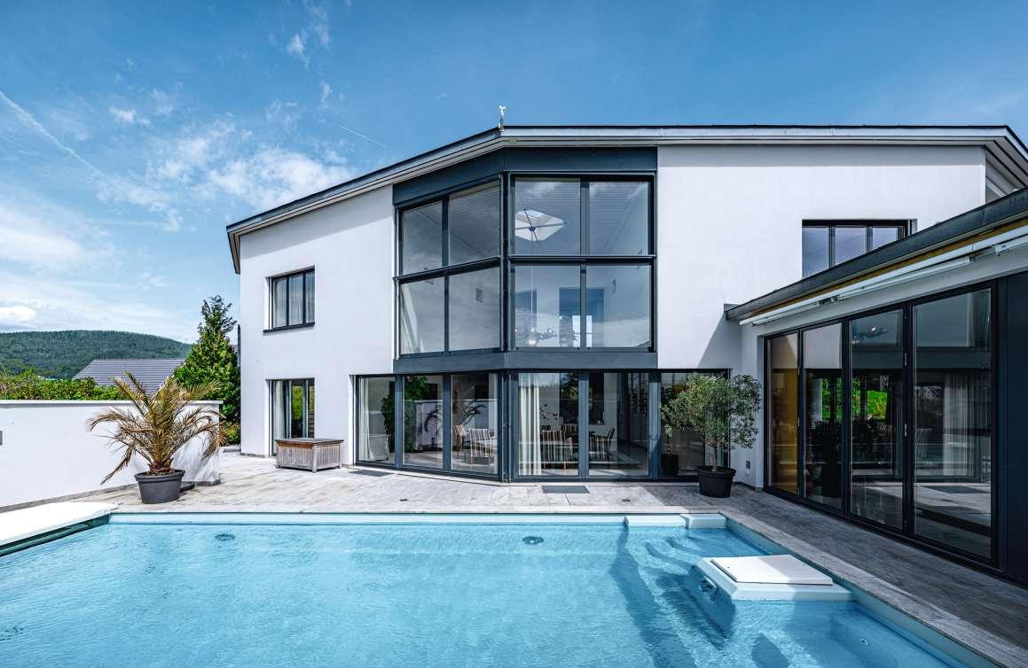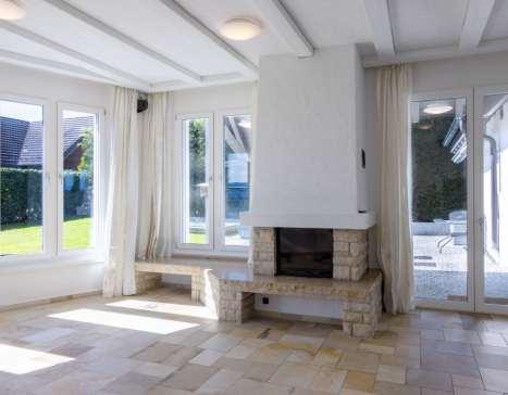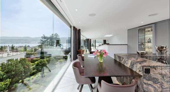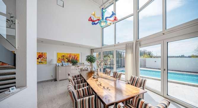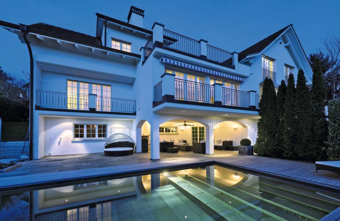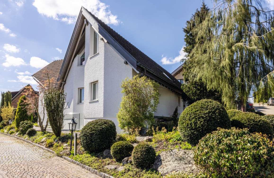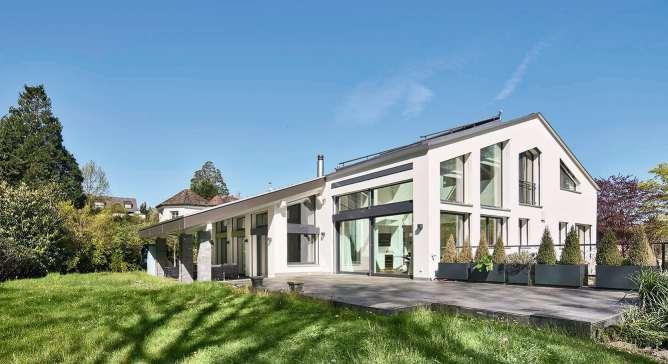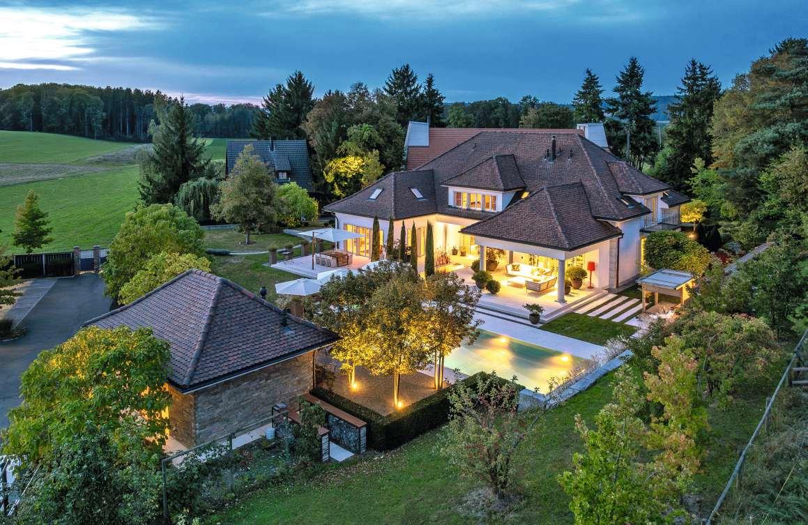 Die Villa vereint zahlreiche Attribute des zeitgemässen exklusiven Wohnens und bietet viel Komfort und zeitlose Eleganz Über eine private Zufahrt gelangt man zum rund 3000 m2 grossen Grundstück Die in den 80er-Jahren erstellte Liegenschaft wurde 2016 komplett umgebaut Auf einer Wohnfläche von mehr als 400 m² ist durch das ganze Haus die Liebe zum Detail spürbar Beim Innenausbau wurde Wert auf hohe Qualität gelegt Das Raumkonzept ist durchdacht und entspricht Bewohnern mit gehobenen Platzansprüchen