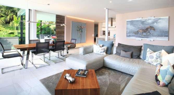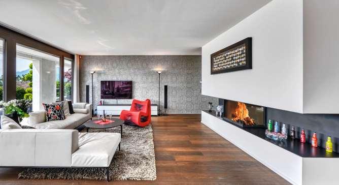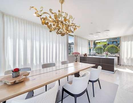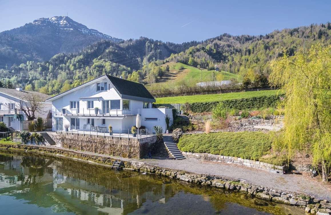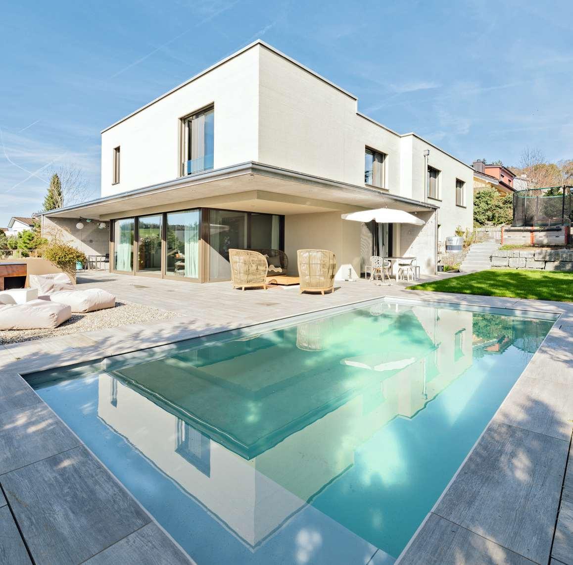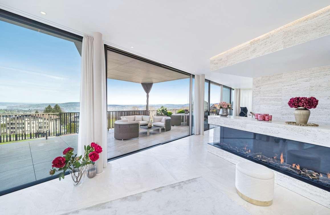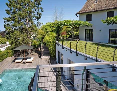 Die Villa vereint zahlreiche Attribute des zeitgemässen exklusiven Wohnens und bietet viel Komfort und zeitlose Eleganz Über eine private Zufahrt gelangt man zum rund 3000 m2 grossen Grundstück Die in den 80er-Jahren erstellte Liegenschaft wurde 2016 komplett umgebaut Auf einer Wohnfläche von mehr als 400 m² ist durch das ganze Haus die Liebe zum Detail spürbar Beim Innenausbau wurde Wert auf hohe Qualität gelegt Das Raumkonzept ist durchdacht und entspricht Bewohnern mit gehobenen Platzansprüchen