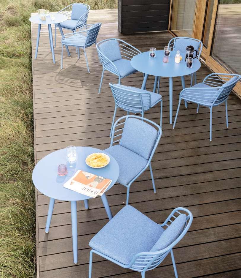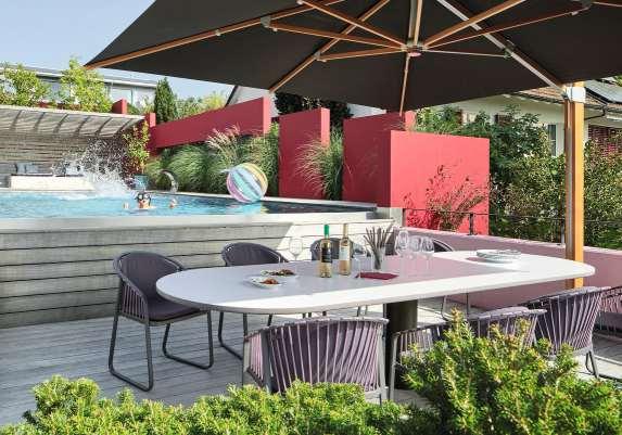Leichte, stapelbare Terrassenstühle – mit und ohne Armlehnen – aus Aluminium, die robust und langlebig sind, das zeichnet die neue Outdoor-Kollektion «Cancún» aus,welchesdas1952inDänemarkgegründete Unternehmen Bo Concept im Sortiment führt. Für den Entwurf ist Morten Georgsen, Künstler und Designer, verantwortlich – er ist ebenfalls Däne, hat sein Designstudio aber 2002 ins sonnige Valencia verlegt Zur «Cancún»-Linie gehören auch Esstische in zwei verschiedenen Grössen sowie Cafétische aus verzinktem Stahl und mit verstellbarem Fuss für einen sicheren Stand. Abgerundet wird die Linie mit runden Bouclé-Sitzkissen aus Polyester.
