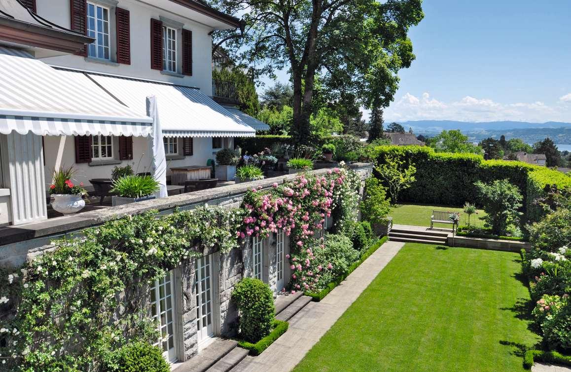 Der parkähnliche, wunderschöne Garten mit dem angrenzenden Waldstück und verschiedenen Sitzplätzen sowie einem historischen Spycher lässt keine Wünsche offen Das Untergeschoss bietet ein Home Cinema sowie Fitness- und Wellnessbereich mit Dampfbad und Sauna.