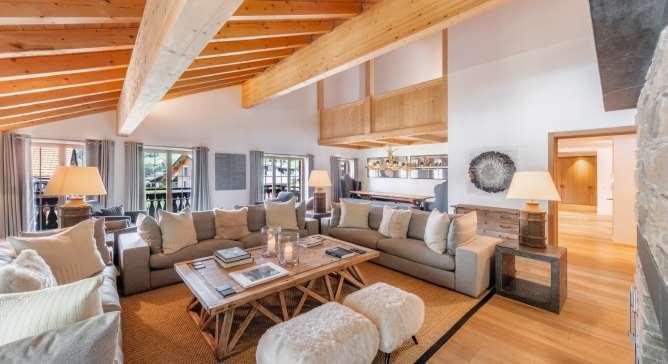 Diese aussergewöhnliche Residence erstreckt sich über zirka 700 Quadratmeter Wohnfläche und bietet eine einzigartige Atmosphäre von Eleganz und Komfort. Zwei grosszügige Wohnbereiche mit Cheminée schaffen eine einladende Kulisse für entspannte Abende mit Blick auf die atemberaubende Alpenlandschaft. Die hochwertige Küche und das Chalet-Chic-Fonduestübli mit offener Feuerstelle sorgen für kulinarische Höhepunkte. Sechs luxuriöse Schlafzimmer, jedes mit eigenem Ensuite-Bad, bieten eine Oase der Ruhe Ein besonderes Highlight ist der 116 Quadratmeter grosse Nebenbereich mit einem Skiraum und beheizten Skischuhständern. Die geräumige und private Tiefgarage bietet Platz für zehn Fahrzeuge, und die angrenzende Lounge mit eigener Küche und Weinkeller ist perfekt für exklusive Veranstaltungen.