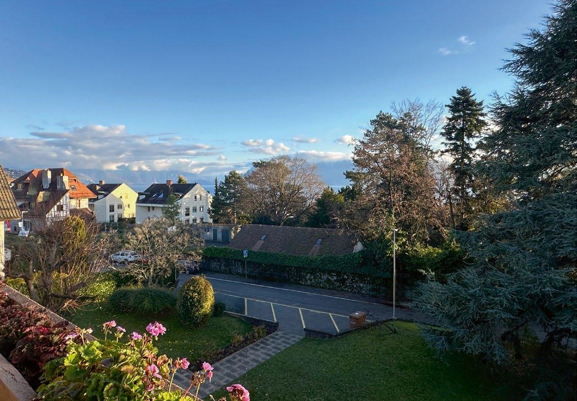 Appartement d’env. 89 m2 avec magnifique vue sur le lac et les montagnes, dans bel immeuble du début du 20ème siècle Accès direct avec ascenseur Parc arboré à usage commun Place de parc extérieure incluse