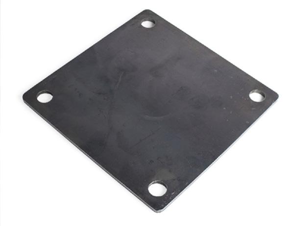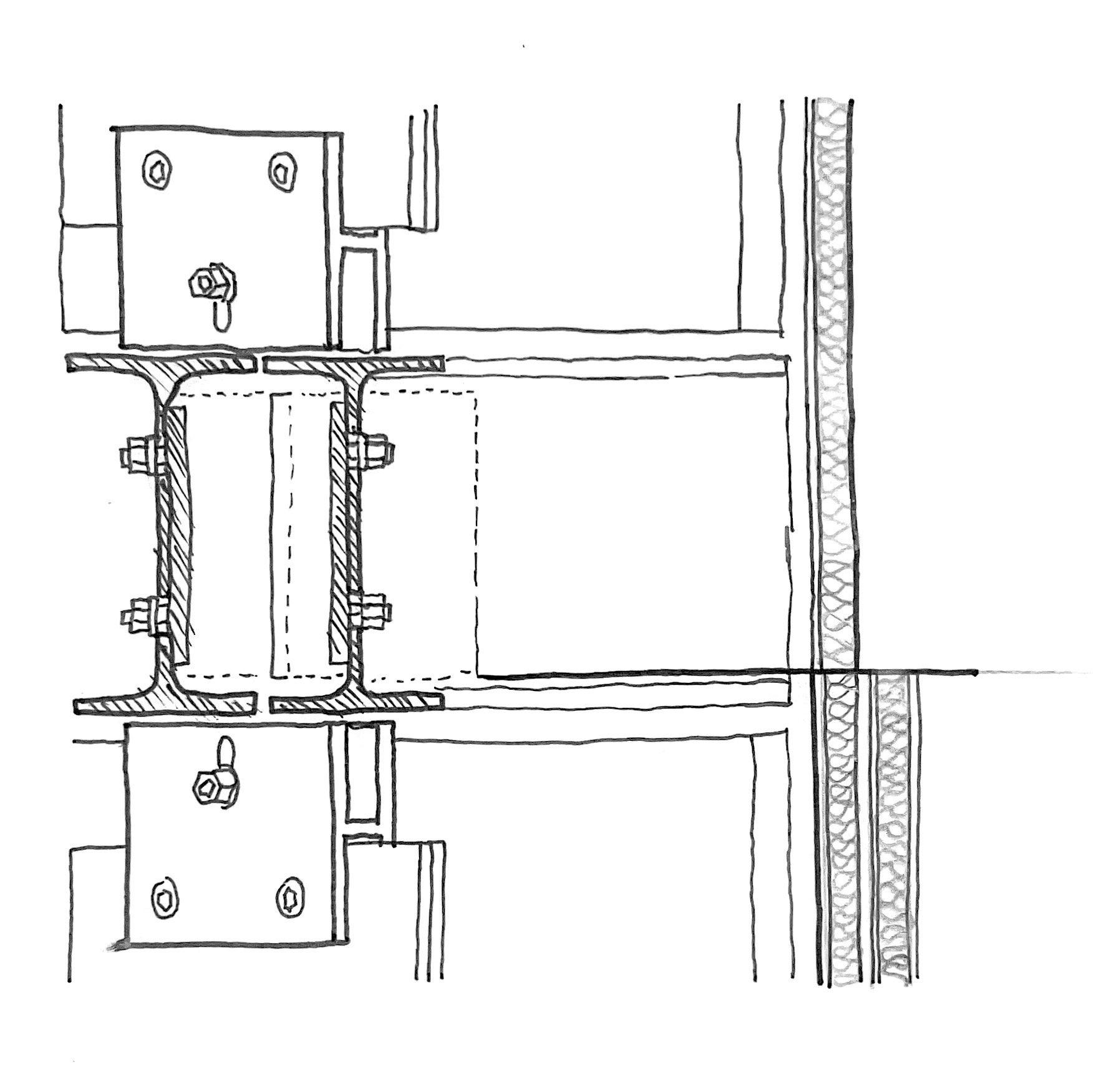 18. Galvanized steel element for support fixing of glass fins, fixed to steel plate with compression screws