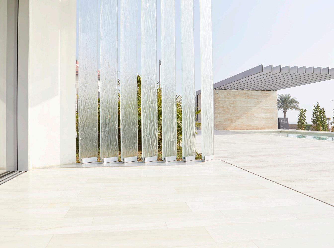 30. Vertical wrinkled glass - 2 layers of laminated glass Variable depth Horizontal wrinkled glass transition