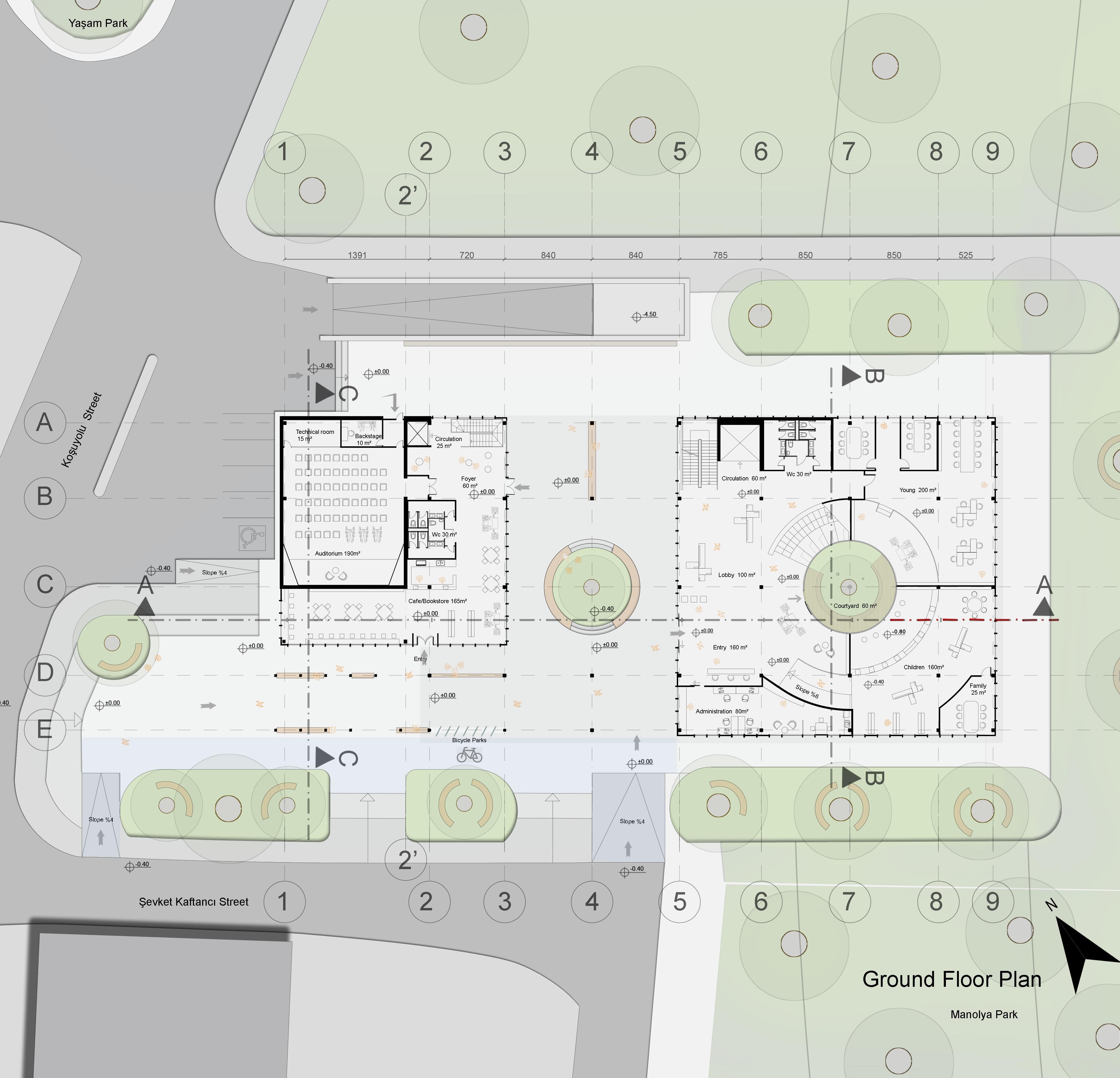 The project, located in the Kadıköy district, aims to transform unused parcels into public green spaces and ensure the continuity of these areas to create a linear axis. As a result of this axis, the significant elevation difference in the selected project area has been addressed by incorporating a courtyard-based cultural arcade with multiple entrances. The functionality has been determined based on the needs of the region’s users. Supporting facilities have been added to enhance the newly created public green spaces.