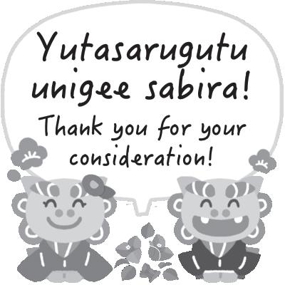 「めーなち るーちゅー うてぃ びんちょー し、あしばな!」(毎日琉球で勉強して、そし て遊んで下さい)