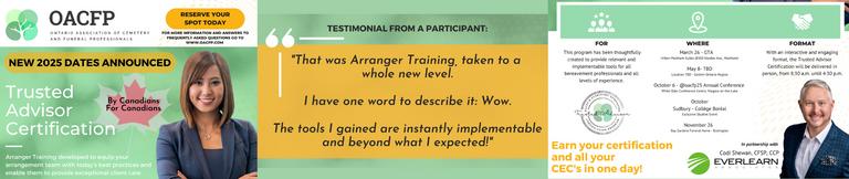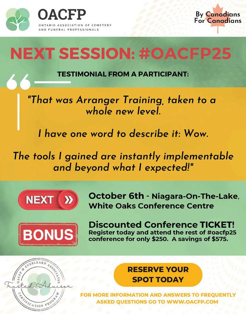 Together, these sessions exemplified the OACFP’s commitment to equipping members with the tools, insights, and confidence needed to lead with trust and impact in today’s evolving bereavement landscape.