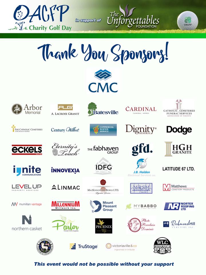 Special thanks go to our sponsors and donors especially Gold Sponsor Carrier Mausoleums Construction Inc and to Golf Committee Chair David Perry for his outstanding leadership in organizing another seamless and inspiring event.