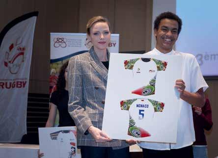 принцессы. Победителем стал Йоанн Фонкоа, ученик 9-го класса, придумавший дизайн, который идеально передает дух единства и динамики регби. В майках с его дизайном команда Монако по регби-7 U16 играла на Международном турнире в Дубае в конце ноября, также