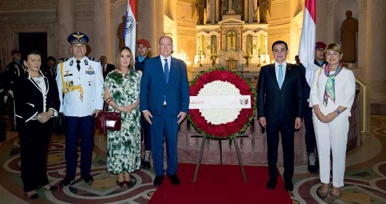 During his trip to South America, the Prince made his first official visit to Paraguay, at the invitation of Santiago Peña, President of the Republic of Paraguay. The Sovereign began by visiting the National Pantheon of Heroes, a major site of remembrance and a symbol of Paraguayan history, where he lay a wreath. Prince Albert II was then received at the Presidential Palace by President San -