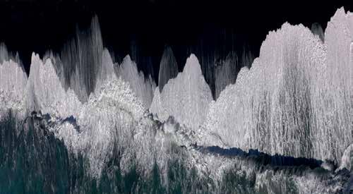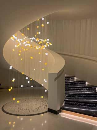 The monumental staircase is illuminated by a shower of blown-glass mimosa.