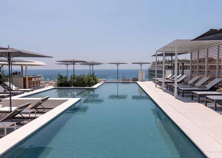 The rooftop pool blends seamlessly into the Mediterranean.