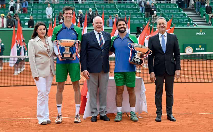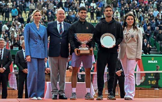 Prince Albert II, Princess Charlène and Mélanie-Antoinette de Massy with Carlos Alcaraz and Lorenzo Musetti, the two finalists of the 2025 Rolex Monte-Carlo Masters.