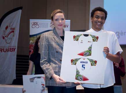 H.S.H. Princess Charlène, President of the Monegasque Rugby Federation, visited the Collège Charles III for the 2nd edition of the U16 National Team Jersey Design Competition. Organized by the Monegasque Rugby Federation, in partnership with the Princess Charlène of Monaco Foundation and the Department of National Education, Youth and Sports, the initiative once again celebrated both art and athletic spirit. 158 young artists, 12 to 15 years old, took part in this challenge: to imagine a rugby jersey that would unite the vibrant symbols of Monaco and South Africa, along with the emblems of the Federation and the Foundation. The theme, symbolically linking Princess Charlène’s native South Africa and her adopted home of Monaco, reflected the values of unity, friendship, and respect that lie at the heart of both sport and the Princess’s personal story. The moment of triumph came for Yohann Fonkoa, a talented 9th-grade student, whose design perfectly captured the spirit of unity and dynamism at the heart of rugby. Yohann’s creation was worn by the Monegasque U16 national rugby sevens team at the Dubai International Tournament which took place on 28–30 November at the Sevens Stadium. As an additional honour, he received a unique jersey signed by the team’s players, a cherished keepsake marking this memorable achievement.