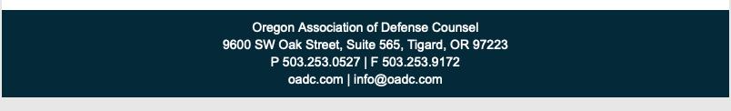 The Mission of OADC is to collaborate, educate and unify the Oregon defense bar by providing professional development, sharing collective knowledge, advocating for defense concerns and working to protect the civil justice system.