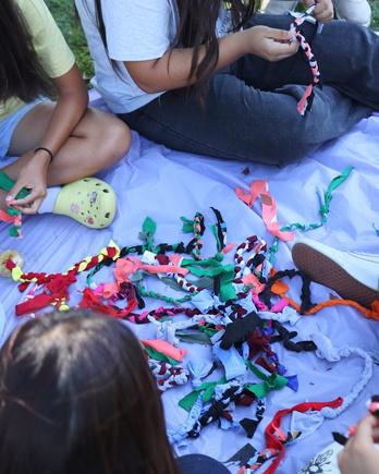 Another one of the stations was dog toy making like the service event that Region 3 participated in at Beach Boomba. We were told to bring two old t shirts to make this service project possible. Members from both divisions came together and started cutting the old shirts into strips long and wide enough to be braided and knotted together. Some of the key clubbers were able to braid the strips into thick and beautiful patterns that dogs would happily play with. This project was a great way to create quick and easy dog toys to be donated to animal shelters. Millions of dogs are stuck in animal shelters with no one to care for them. This project gives them a new toy, which is something they probably haven’t had in years.