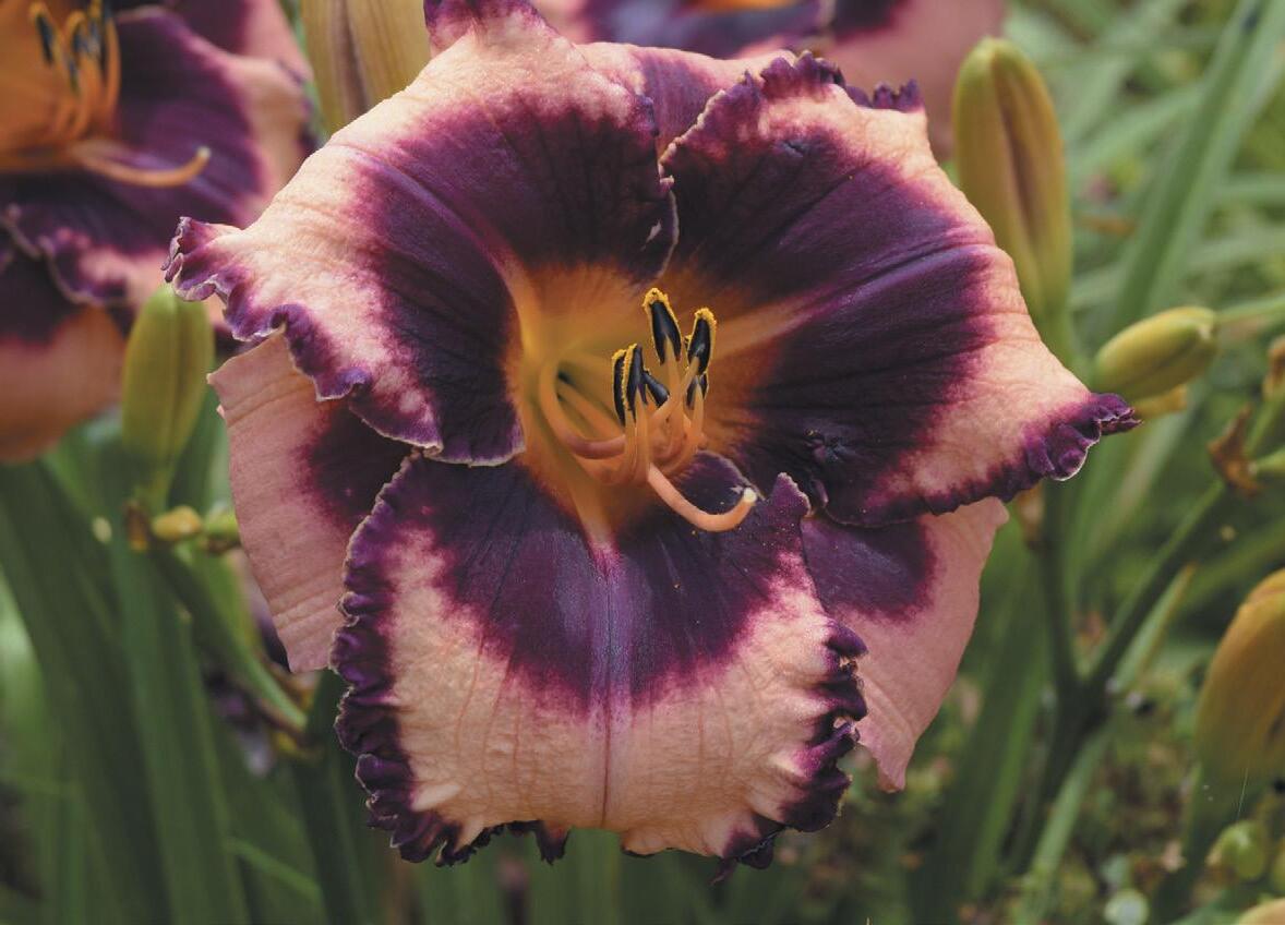 Stunning deep rich purple blooms with pale rose purple eye. A game-changer in the garden. 30” tall, 6” bloom. Mid. Dormant. Tetraploid.