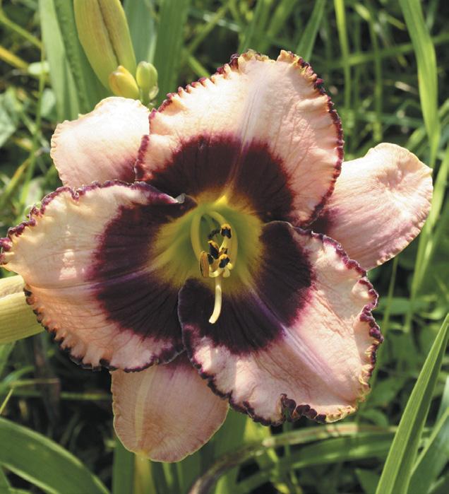 A “rock solid’ choice. This cream variety with plum violet eye and edge is hard to beat. 27” tall, 4 3/4” bloom. Early to Mid. Dormant. Fragrant. Tetraploid. $39.99 or 3 for $99.99