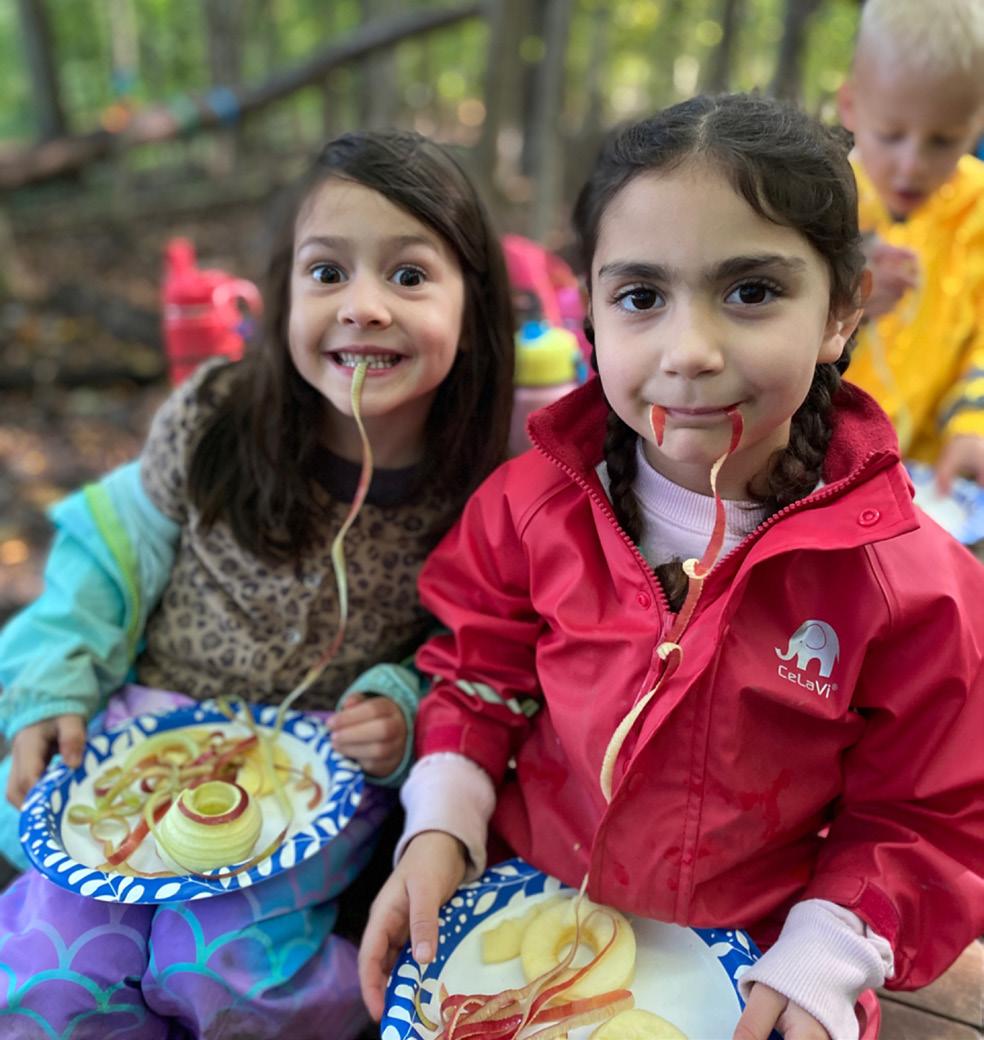 Outdoor work and Brain Gym are work choices guided by Specialists out of the classroom environment. Art and Music are guided by the classroom teacher within the classroom. In addition, Music, Spanish, Ecoliteracy, Library, and Art are taught by a Related Arts Teacher. A Spanish teacher offers Spanish lessons to all children in the classroom on a regular basis. Kinderforest takes place at least once per month for the morning work cycle with possible extensions. The Kinderforest movement is a response to the decline of children’s access to and engagement with natural spaces. It is an attempt to reestablish a healthy balance of indoors and outdoors in children’s lives.
