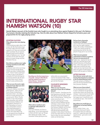 INTERNATIONAL RUGBY STAR HAMISH WATSON (10) Hamish Watson was part of the Scottish team who fought to an astonishing draw against England in this year’s Six Nations Tournament, thereby retaining the Calcutta Cup. Here he talks about how Oakham School shaped his formative years and prepared him for his rugby playing career.