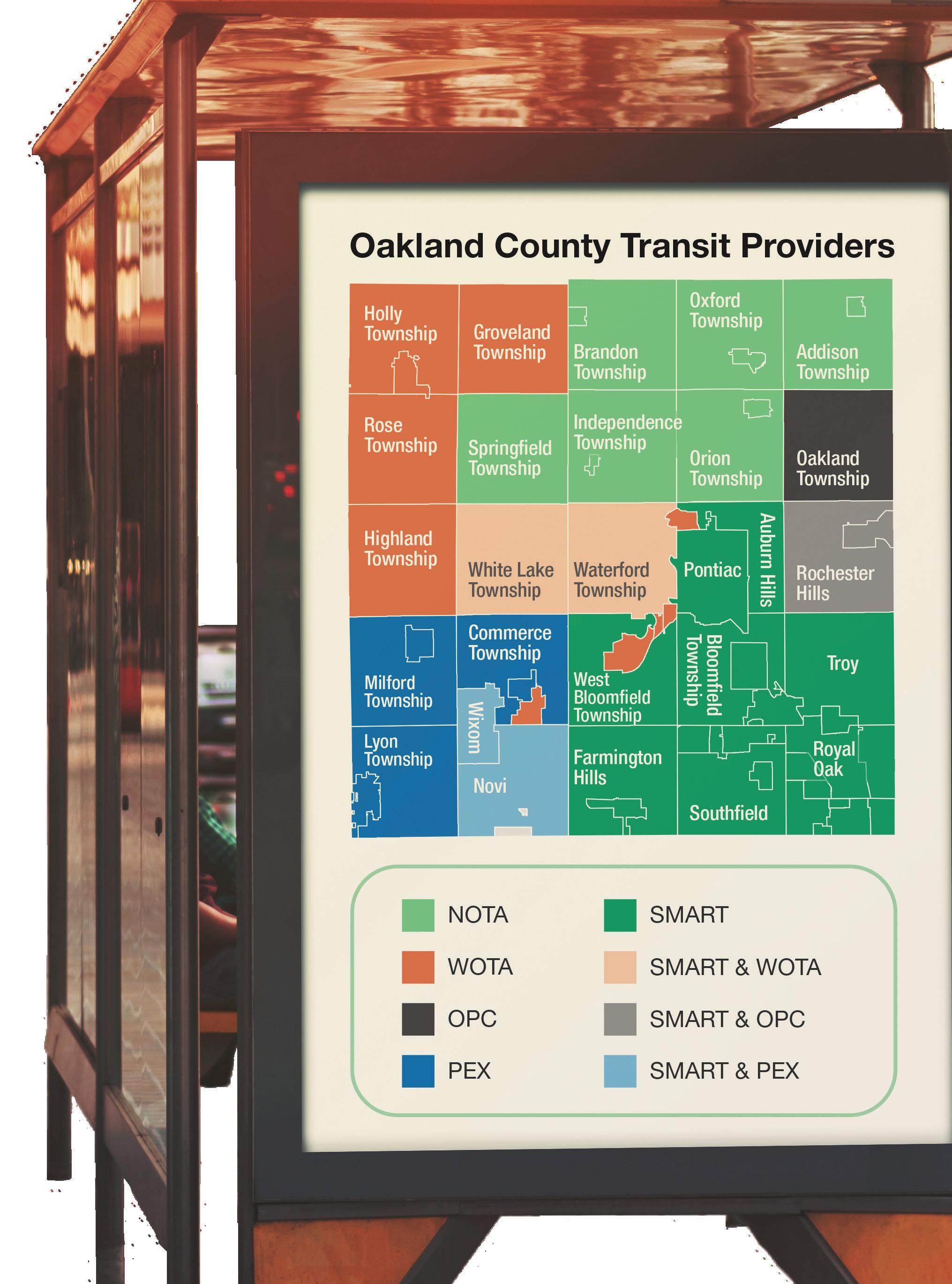 Within Oakland County, there are two primary types of transit providers. The first is the Suburban Mobility Authority for Regional Transportation (SMART) and the second is the Community Transit providers including North Oakland Transportation Authority (NOTA), OPC Social and Activity Center (OPC), People’s Express (PEX) as well as some local transportation programs.