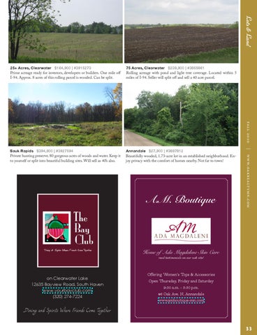 on Clearwater Lake 12635 Bayview Road, South Haven www.yourbayclub.com (320) 274-7224