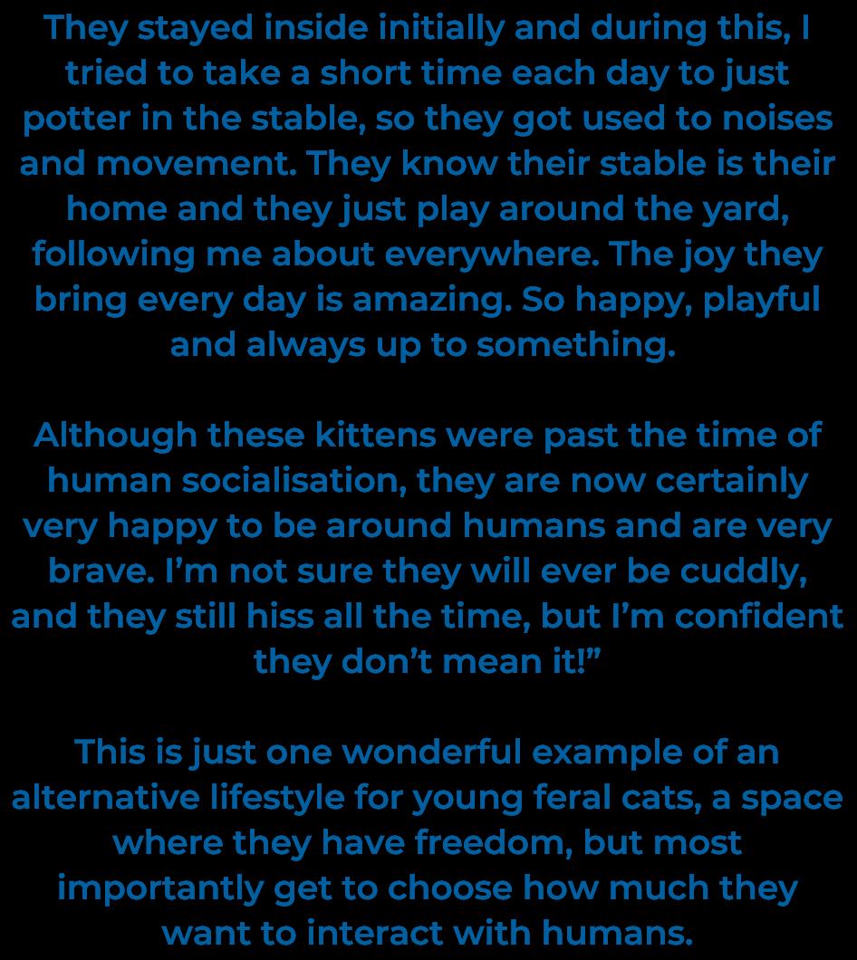 As a free roaming outdoor cat, she has lived the feline dream on Oak Tree Farm; lots of mice to chase, warm stables to snuggle up in, and a stream of visitors to tickle her tummy as she sprawled in the sunshine.