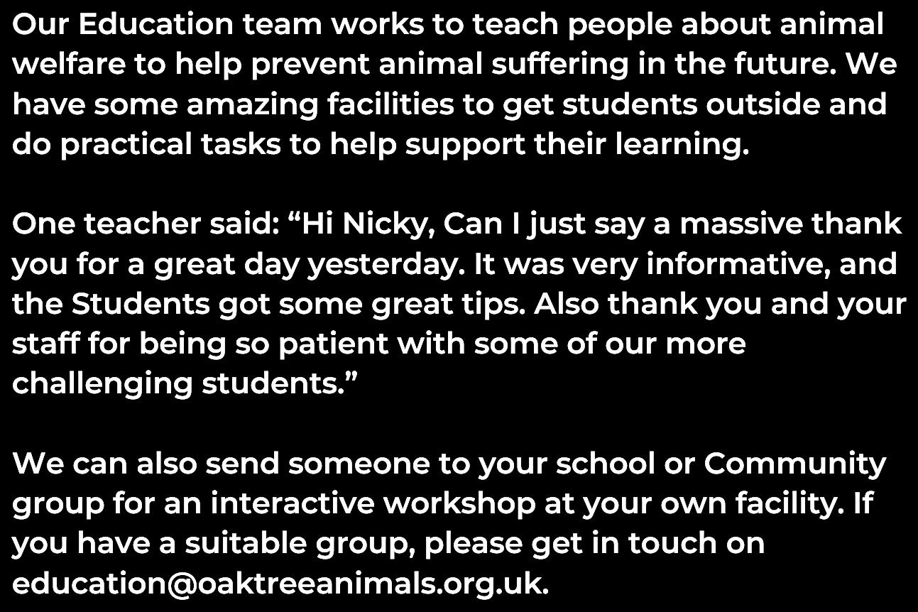 Email: info@oaktreeanimals.org.uk Call: 01228 560082