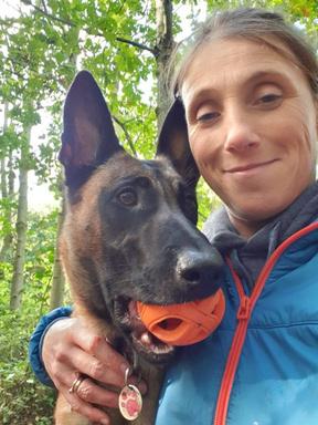 “She's settled in so well, she's a very good girl (but still a stubborn Princess!) and she's very happy with us! Our cat Sigge is still warming up to her and still learning her language and how to play with her, but they share the same bed every night... Her favourite things are destroying her toys, running around at full speed in the fields at the Ridge and cuddles with her daddy!"