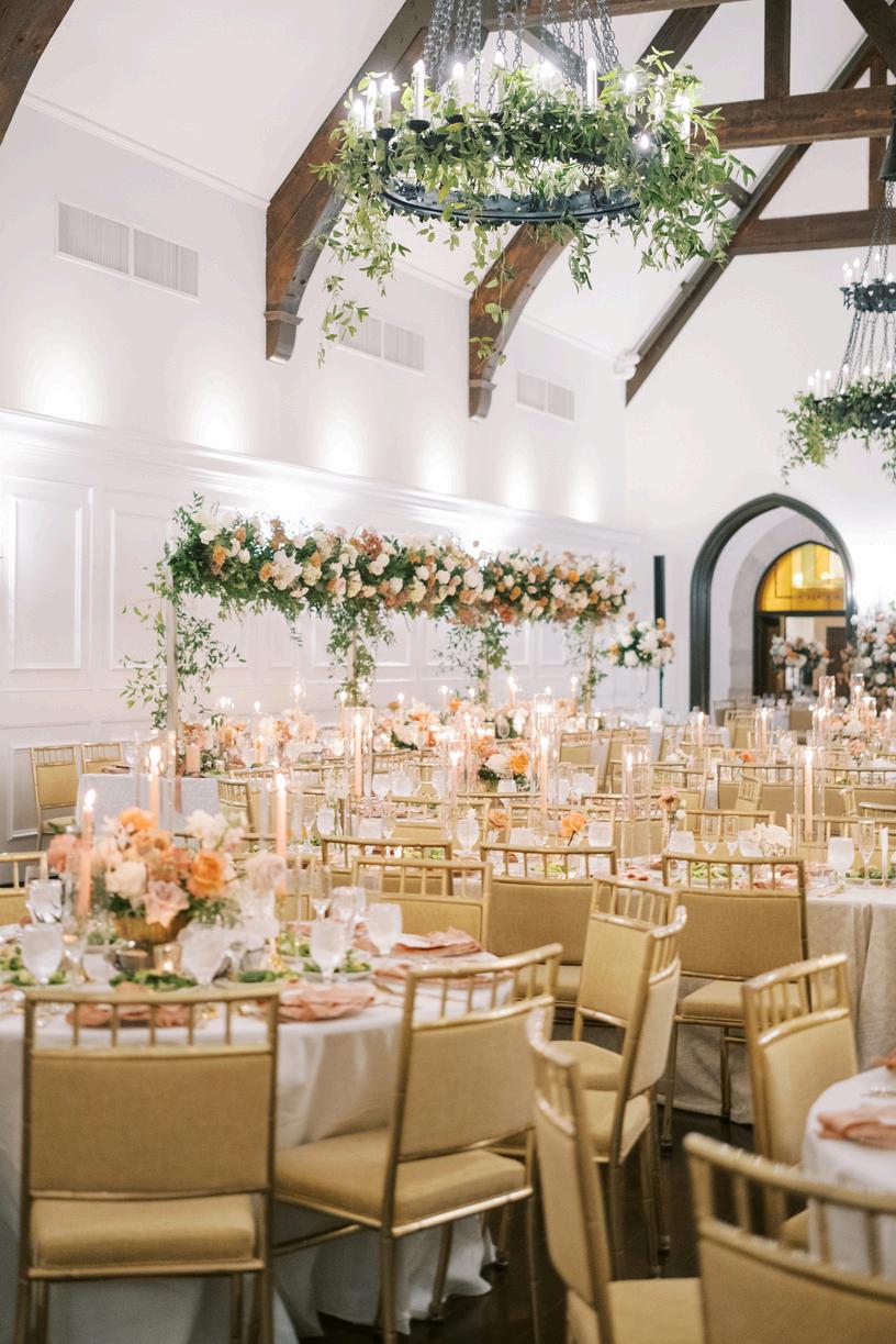 Includes: tables (rounds, banquet, cocktail), Gold Chairs, access to the space from 7am to 12am, Linens, Flatware, Glassware, Service Staff, and Bride & Groom Suites.