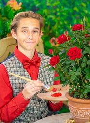 Landon is an 8th grader and is excited to be part of Alice in Wonderland, Jr.. He previously performed as Nigel in Something Rotten! Jr. and enjoys taking on new roles on stage. Outside of theater, Landon likes hanging out with friends, talking, sports, music, photography, gaming, and spending time in nature. Known for his love of matcha and thoughtful reading (often alongside Sine), Landon brings personality and humor to everything he does and hopes you enjoy the show!