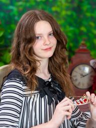 Ivan is a 7th grader who loves working behind the scenes to help with the overall look of the show. He enjoys playing soccer, especially as a goalie, and loves dogs and many other animals. Ivan is very happy to be part of Alice in Wonderland Jr. and hopes you enjoy the performance.