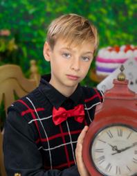 Seraphina is a 7th grader who loves performing and is excited to be part of Alice in Wonderland, Jr. She appeared in the Star of Artists production of Go Back Home at age seven and has also worked as a child actor on a television show in Taiwan since first grade. She is excited to perform with her friends and hopes you enjoy the show.