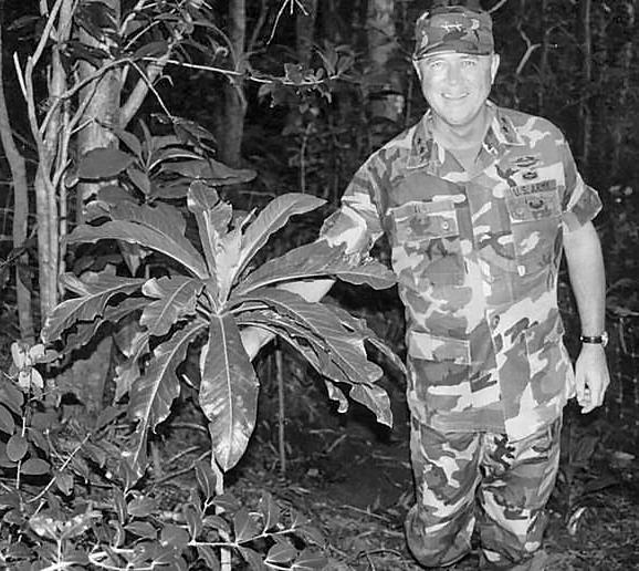 RIGHT U.S. Army Maj. Gen. James T. Hill with a Hawaiian hāhā, or Cyanea superba, ssp. superba—the first recorded endangered plant reintroduction by the Department of Defense in Hawai'i.