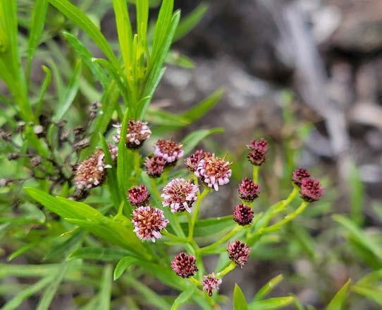 ABOVE The diminutive size of the endangered T. species 1 flowers can make monitoring challenging, but rewarding to find and photographJESSICA KIRKPATRICK. RIGHT Hand-colored technical drawing of Tetramolopium species 1 by Tracy Wager, technical illustrator with Center for Environmental Management of Military Lands (CEMML), Colorado State University.