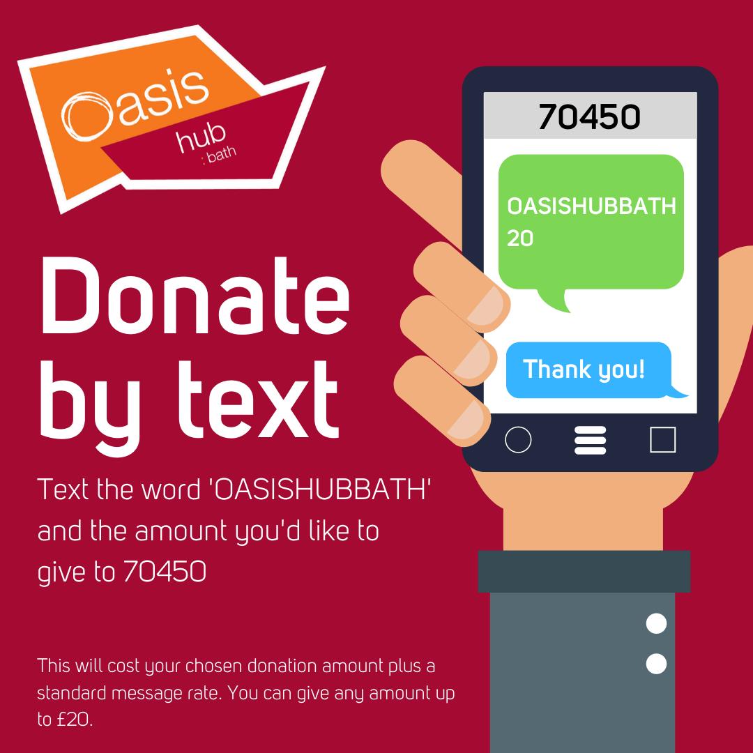 There are lots of ways to give financially to the work of Oasis Hub Bath. You can give regularly through online banking or by completing a standing order form, which enables us to claim Gift Aid on your donation For all the information you need about different ways to give, visit www oasisbath org/donate Thanks so much.