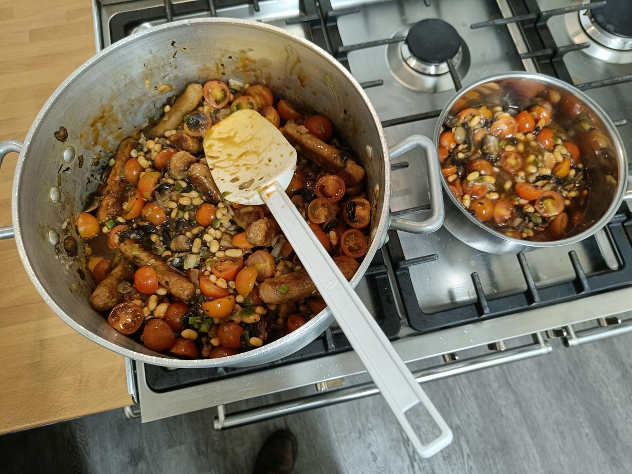 In previous years, meals have been provided by external partners, bu this year catering was all done in-house! This was possible thanks t a gaggle of volunteers from our church community, who joined in on Sunday afternoon to batch cook for the coming month. We mad hearty potato stew, nachos with vegetarian chilli, veggie sausag casserole, and an all-day breakfast, among other delicious dishe which filled up the freezer. Our Living Room members appreciated the time and care of a home-cooked meal