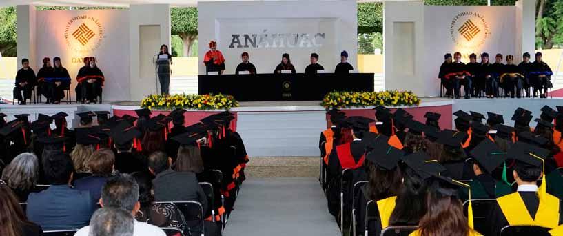 Sebastián González Pastrana, egresado de Ingeniería Industrial para la Dirección; Premio CENEVAL al desempeño de excelencia en el examen de egreso de su licenciatura; mención honorifica, león de natación; miembro fundador del capítulo estudiantil de la Association for Computing Machinery (ACM); expresidente de la Sociedad de Alumnos de la Escuela de Ingeniería y actual software developer en Oracle México, dió el discurso de egreso a la generación de licenciatura. Para maestría, el encargado fue el Maestro en Ciencias Penales, Urbino Méndez Robles; actual fiscal en la Fiscalía General del Estado de Oaxaca. La ceremonia de graduación es el evento académico más importante para la Universidad Anáhuac Oaxaca, porque hace visible la misión de formar personas íntegras, con liderazgo de acción positiva, conocimiento, técnicas y valores que les permitirán ser constructores de una sociedad más justa y humana.