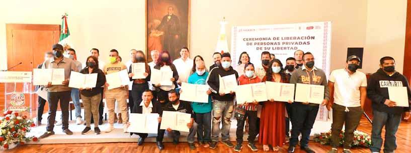 Como un acto de justicia humanitaria, el Gobernador de Oaxaca, Salomón Jara Cruz, entregó de manera simbólica siete de un total de 23 boletas de liberación a personas privadas de su libertad, de bajos recursos económicos e indígenas que tenían condenas por delitos menores, como robos y lesiones simples y que no cuentan con recursos para pagar su fianza.