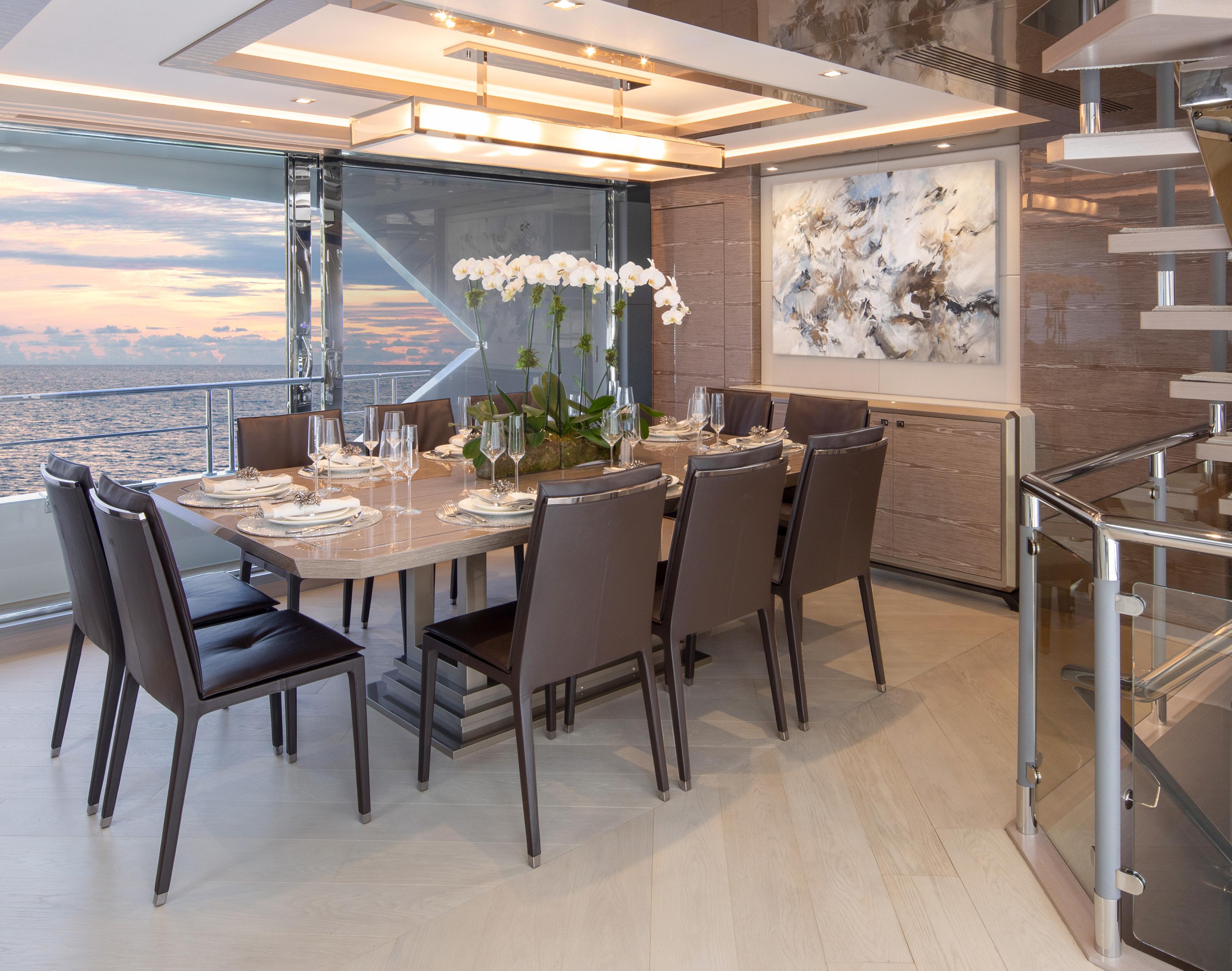 Although lavished with luxurious finishes, this bridge is completely focused on functionality for your captain. A full navigation package complements the breathtaking view. World-renowned designer Evan K. Marshall has reimagined the console and display pod for more ergonomic ease, enhancing the piloting experience.