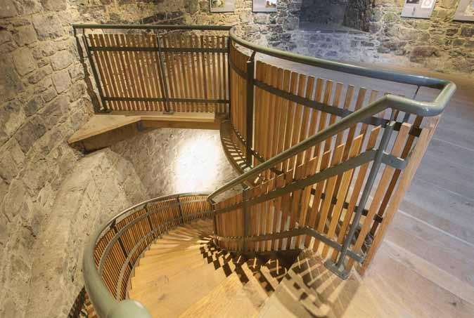 Conservation works to the Keep started with work to the interior at basement level and continued on up to the roof level. Recent concrete additions were removed. The ledges and sockets were repaired for the installation of new oak timber beams and oak floors. Embrasures, window sills, sandstone jambs and arches were repaired where required and new bronze framed windows inserted into the window opes.