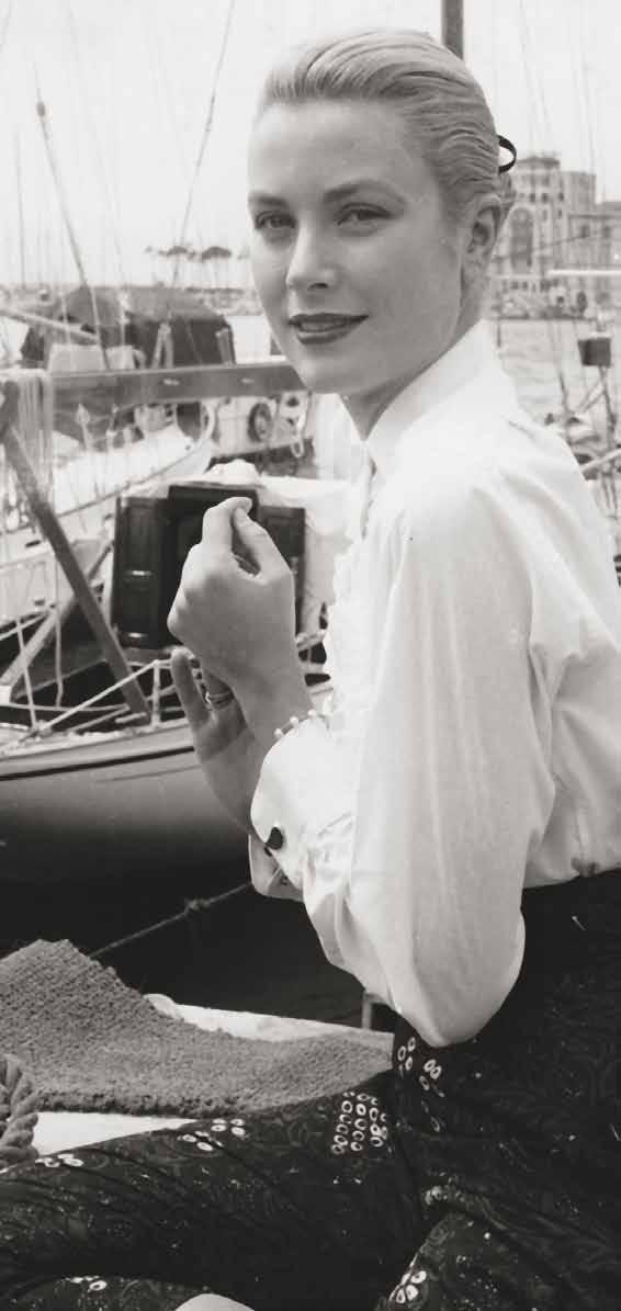 Starting at the height of her career in 1955 – Grace had just received the Oscar for her performance in The Country Girl – we first encounter the actress on the set of Alfred Hitchcock’s To Catch a Thief, filmed on the Côte d’Azur, then see her pose for photographers at the Cannes Film Festival a few months later. Through the lens of Irish-born photographer Edward Quinn, we witness her first meeting with Prince Rainier at the Royal Palace in Monte Carlo, a photo opportunity arranged by Paris Match to which both parties had only reluctantly agreed.