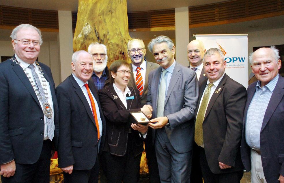 Cllr Richard Finn, Cathaoirleach Mayo County Council; Minister Michael Ring; Prof Martin Downes; Gretta Byrne OPW; Maurice Buckley, Chairman OPW; Marco Tamaro, Director of the Fondazione Benetton Studi Ricerche; Peter Hynes, CEO Mayo County Council; Minister Kevin ‘Boxer’ Moran; Prof Seamas Caulfield