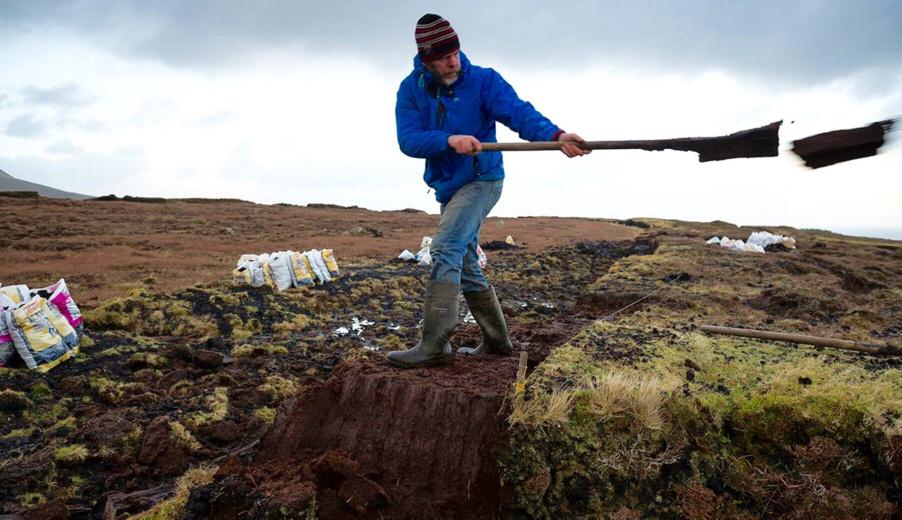 Centre: Declan Caulfield cuts peat using a traditional sleán (bottom): Gretta Byrne, manager of the Céide Fields Visitor Centre celebrates receiving the Carlo Scarpa Prize