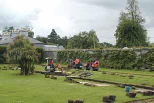 budget constraints it was decided to carry out the work in phases. Phase I was to include the re-construction of the sunken Italian garden and the restoration of the stone steps and main paths around to the rose, cordyline and Italian gardens. The project commenced in mid-2002 and Phase I is complete.
