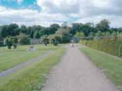 Arthur Hugh removed the old conservatory from the south side of the Pleasure Gardens and replaced it with a high yew hedge with new ornamental gates and stone piers, which were erected in 1890 in memory of his first wife, Lady Mary Smith Barry. These gates formed the new entrance to the Pleasure Gardens on the main central garden axis leading to the classical temple on the south wall and ornamental pond in the centre of the garden, which can all still be seen today.